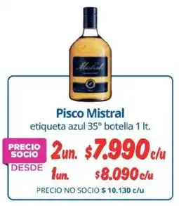 Alvi Pisco Mistral 35° ofertaPisco Mistral 35° 1 LAlvi$7.89011 febrero 202615 abril 2026