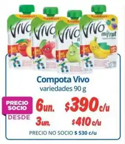 | 3 | Vivo compota mifrut 90 g | Comercial Castro | $449 | 05 febrero 2026 | 28 febrero 2026 | Consultar oferta | |||