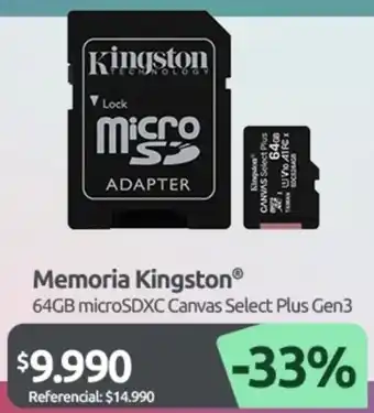 Esta oferta se encuentra disponible en distintas tiendas. Checa todos los productos para obtener la Kingston memoria de menor precio. Si necesitas saber si este mismo producto tiene un descuento más alto en otra tienda, consulta la categoría 'Electrónica'. Estas otras ofertas también podrían ser de tu interés: Sandisk memoria, Maxell memoria y oferta 3.
